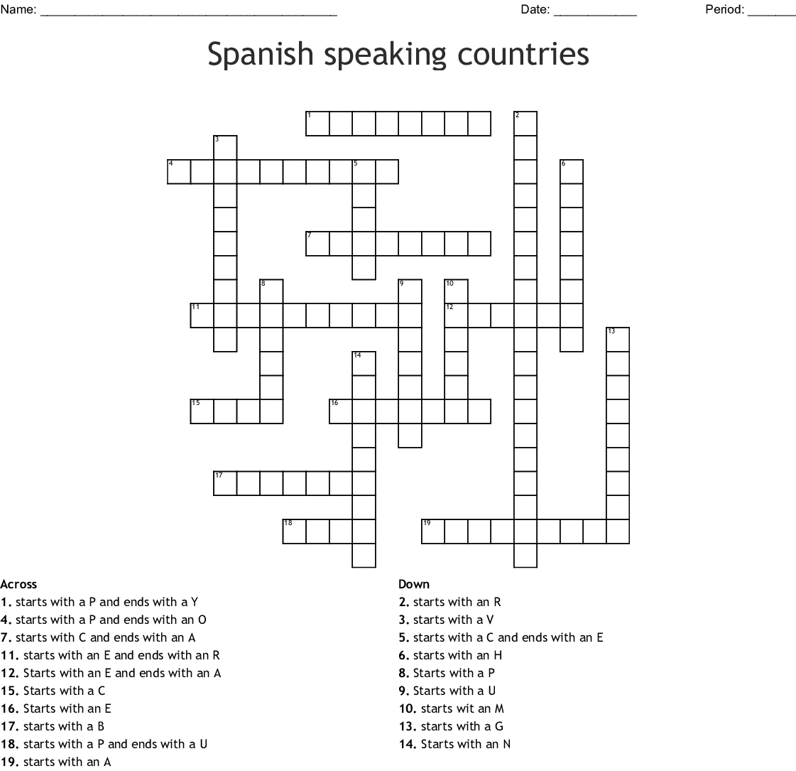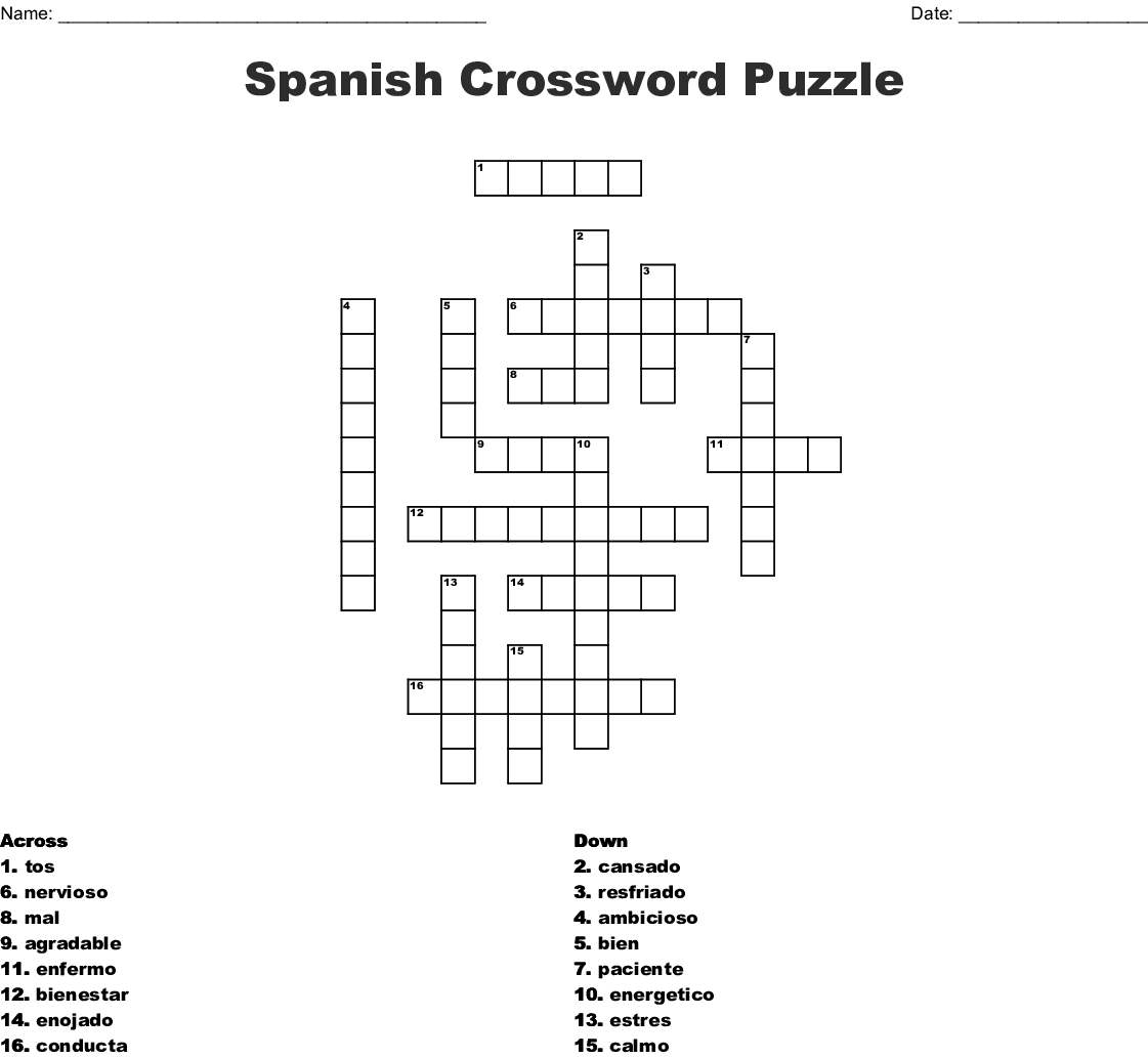Crossword Puzzles In Spanish Printable