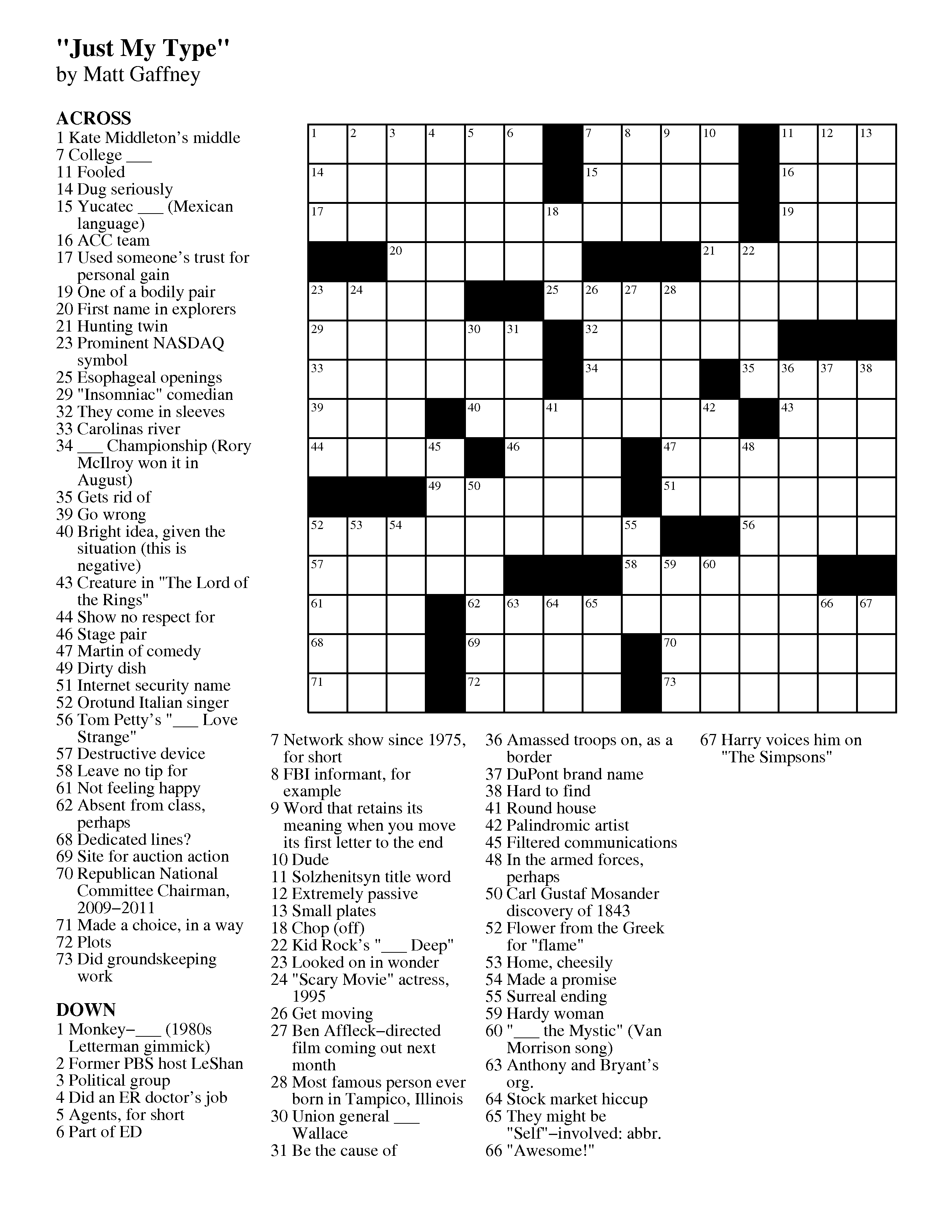 Free Printable Daily Crossword Puzzles October 2016 Printable