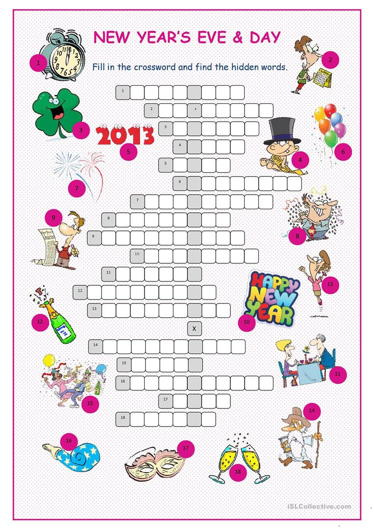 New Year s Eve Day Crossword Puzzle Worksheet Free ESL Printable